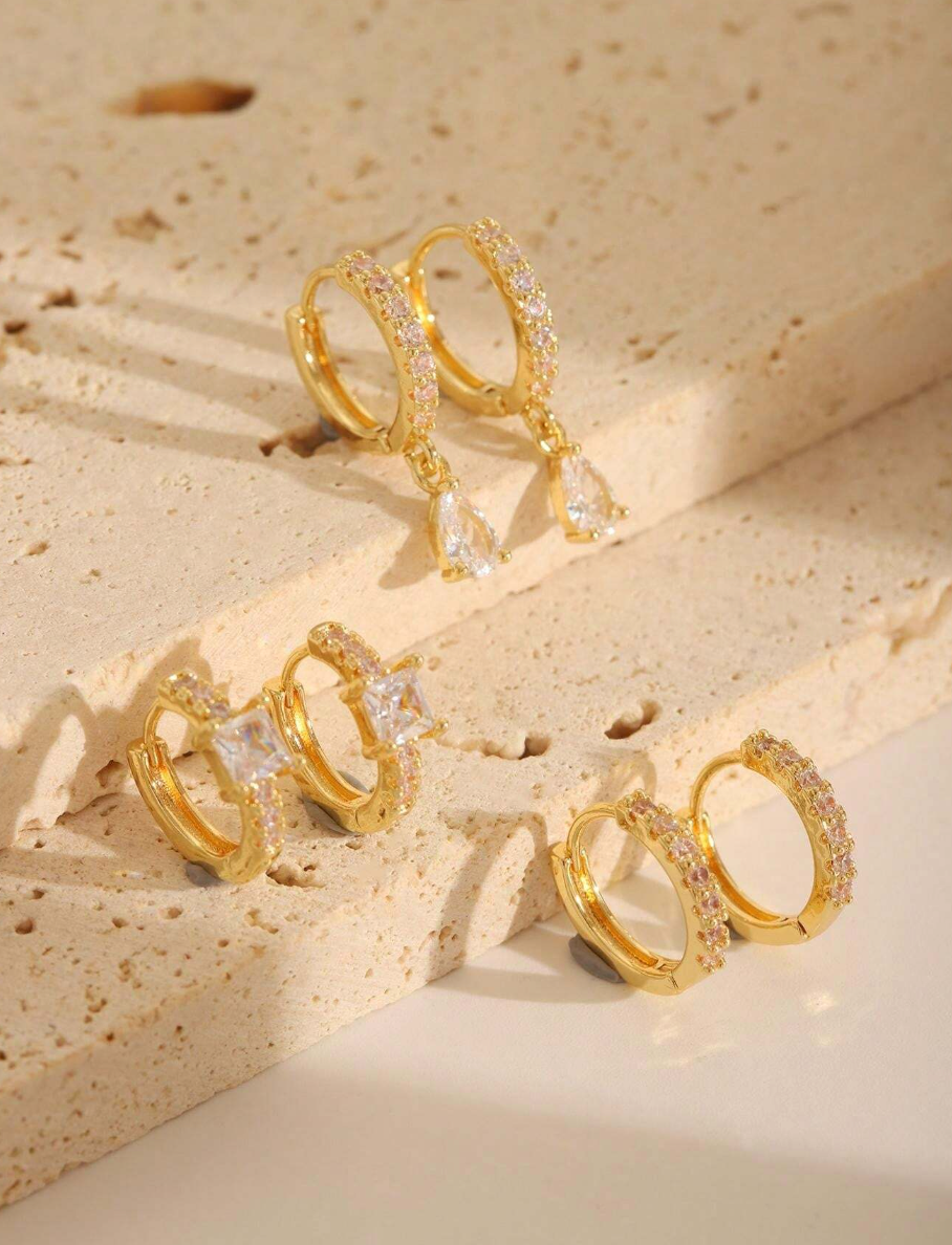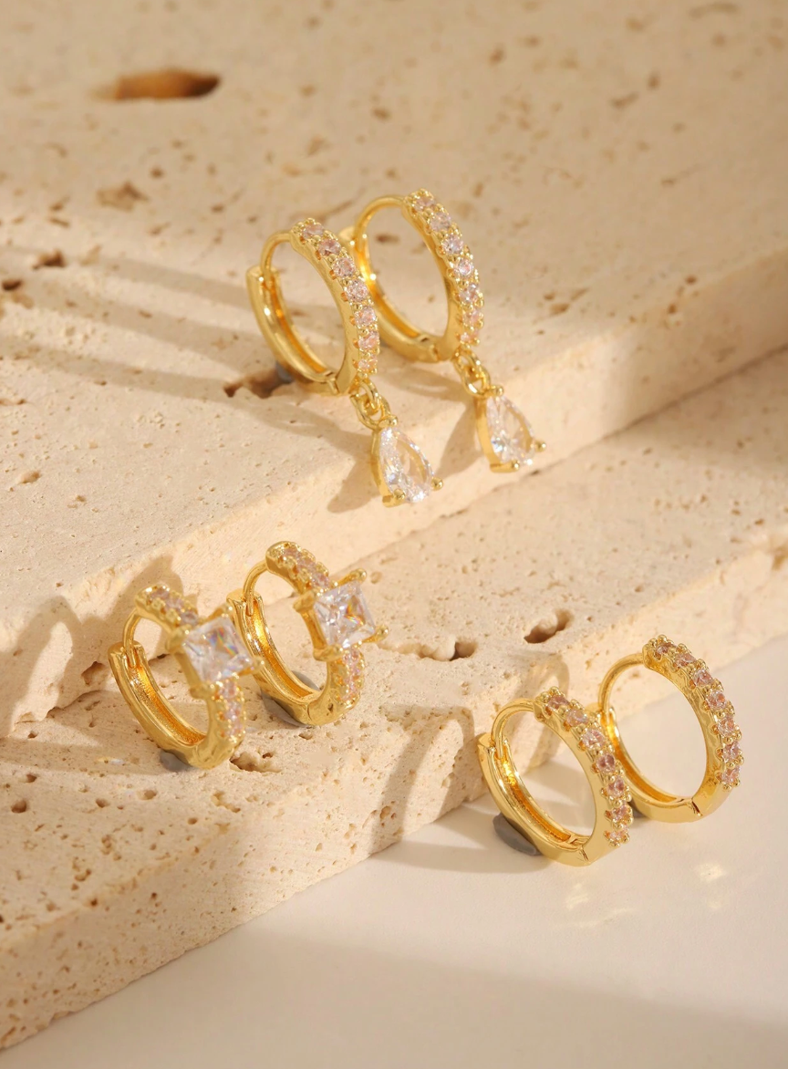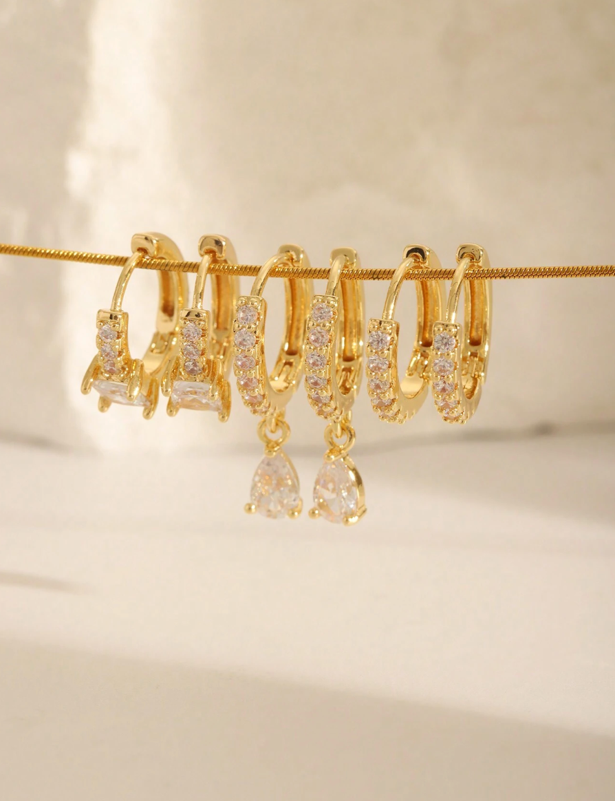 Dette elegante settet inneholder tre forskjellige par ringøredobber, hver med små diamanter og laget i gull. Med varierte design, fra enkle og tidløse til mer iøynefallende og sofistikerte, gir settet deg flere stilvalg for enhver anledning. Perfekte for både hverdagsbruk og spesielle begivenheter, tilfører disse øredobbene en luksuriøs glans til din stil.