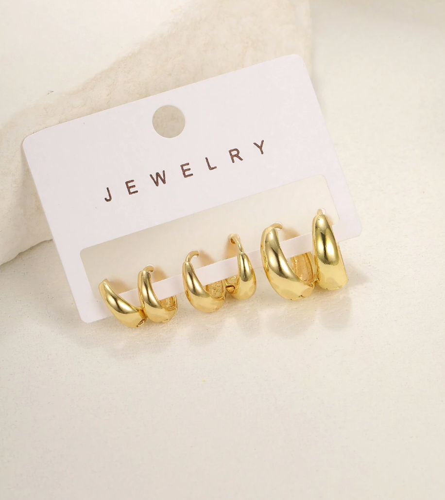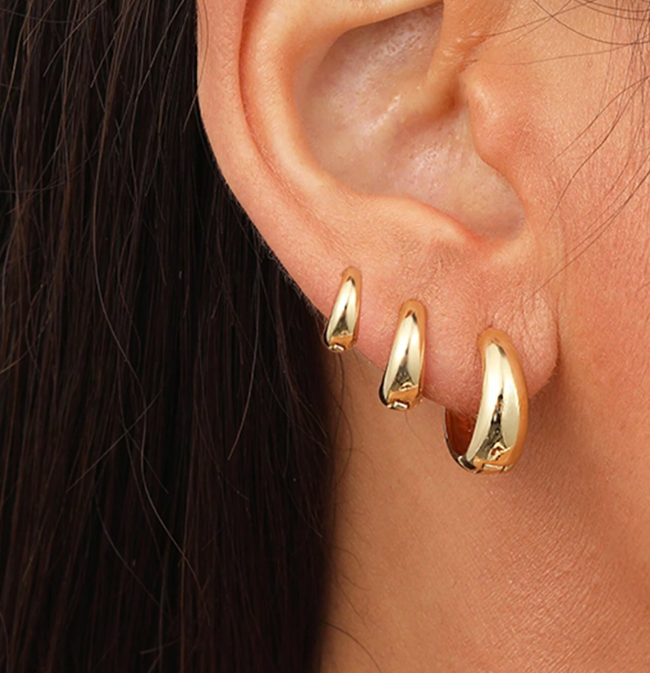 Disse elegante øredobbene består av tre ringer i forskjellige størrelser, laget i gull for et stilfullt og moderne uttrykk. Designet for å gi en iøynefallende effekt, er disse øredobbene perfekte for både hverdagsbruk og spesielle anledninger.