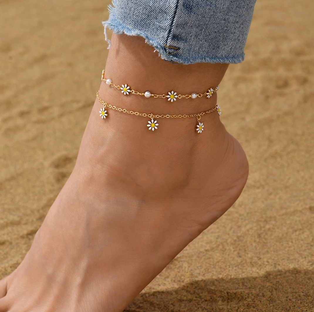 Dette romantiske ankelsmykket er designet med to tynne lenker som danser lett mot huden. Pyntet med små, detaljerte roser, gir det et feminint og elegant uttrykk – perfekt for sommerdager, sandaler og strandliv. De doble lenkene gir et moderne og dekorativt preg, mens roseelementene tilfører en subtil vintagefølelse.