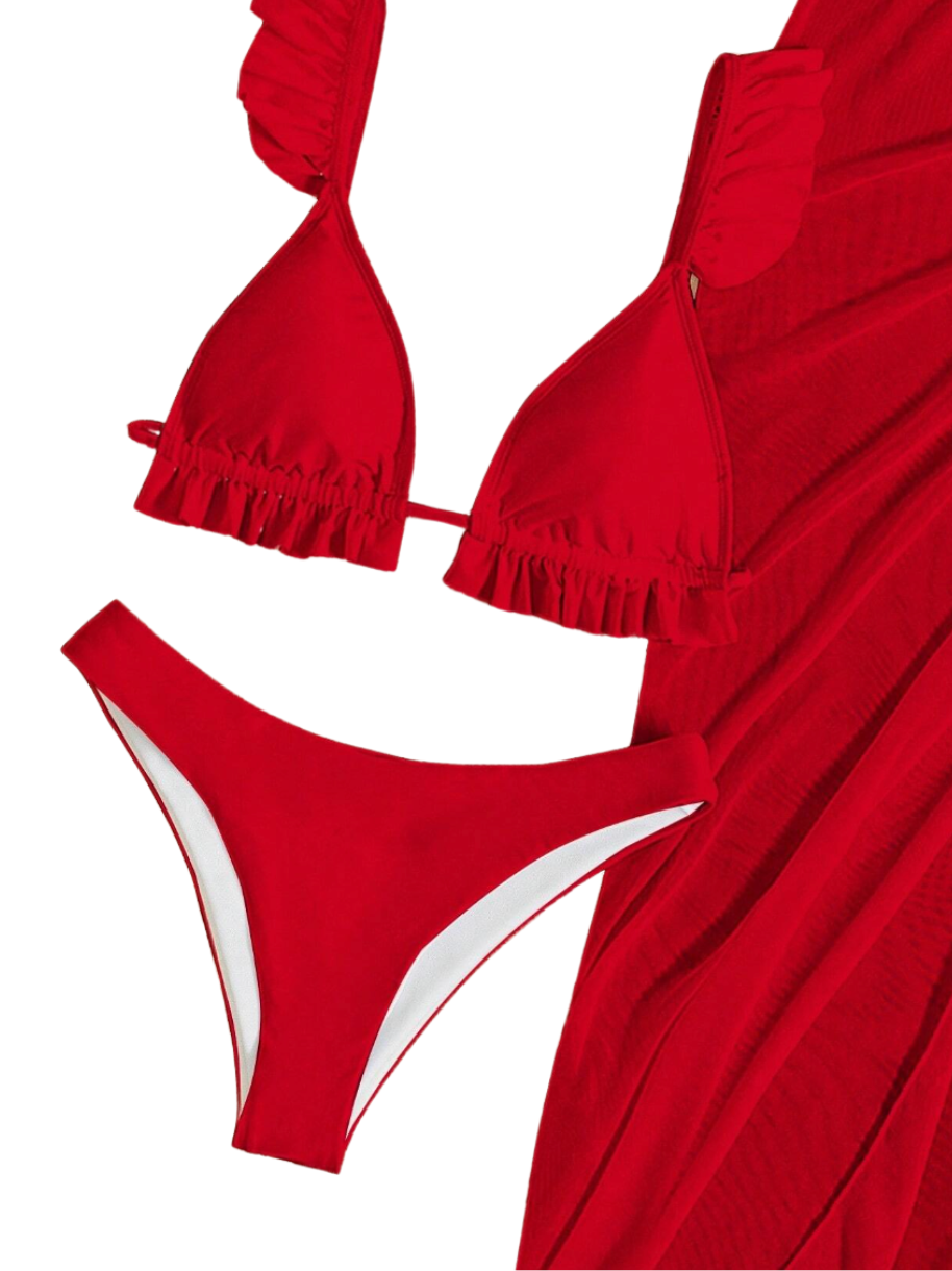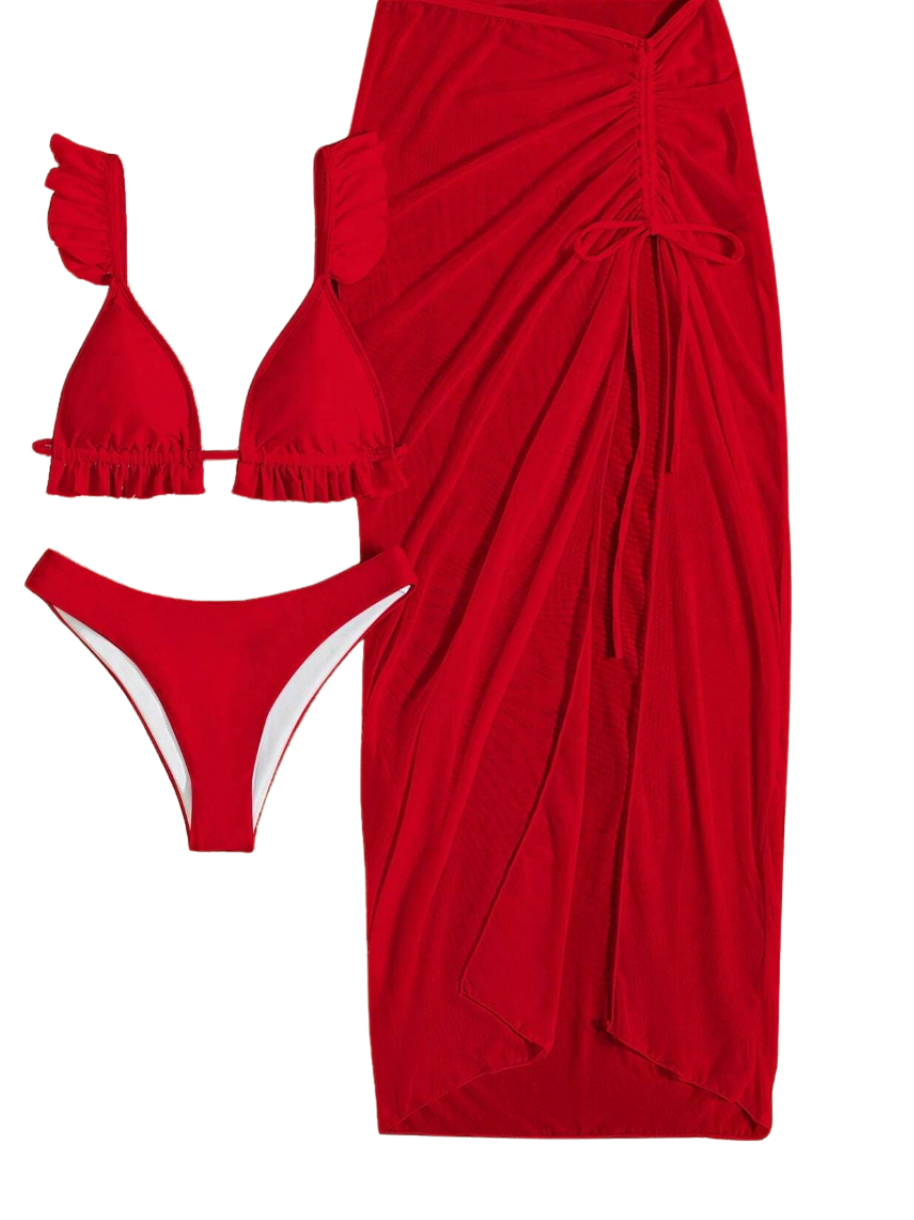 - 3-delt bikini-sett med justerbar skjørt for tilpasset passform
