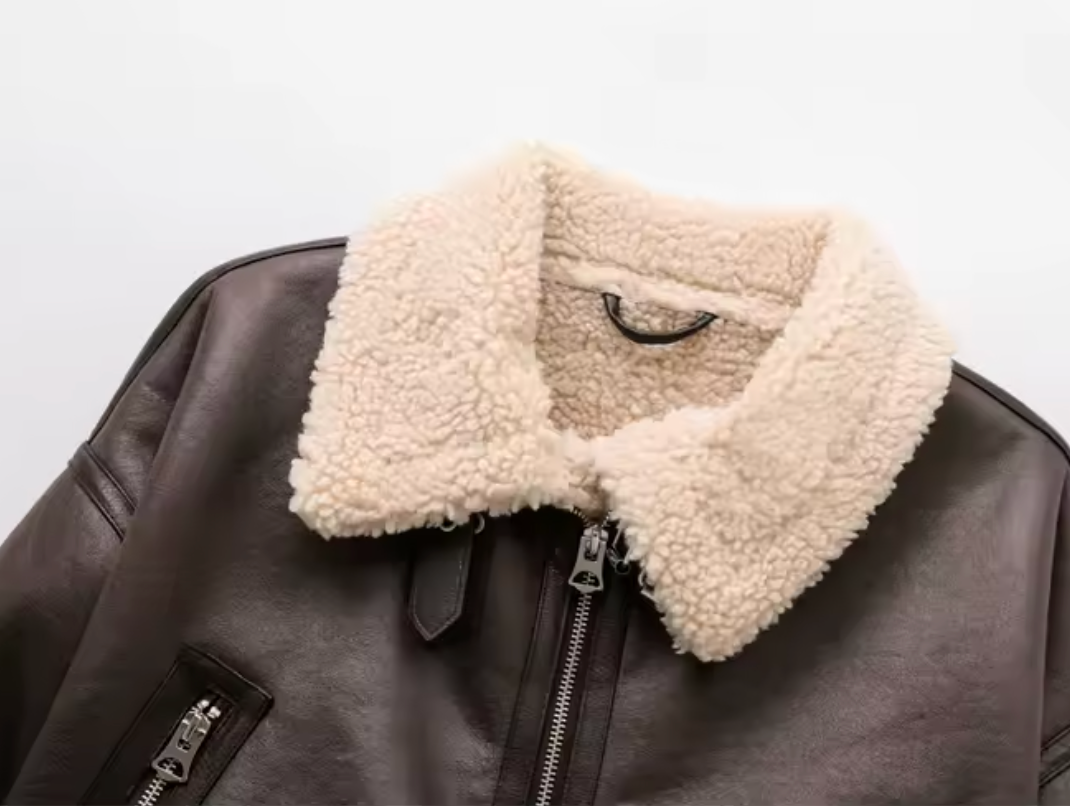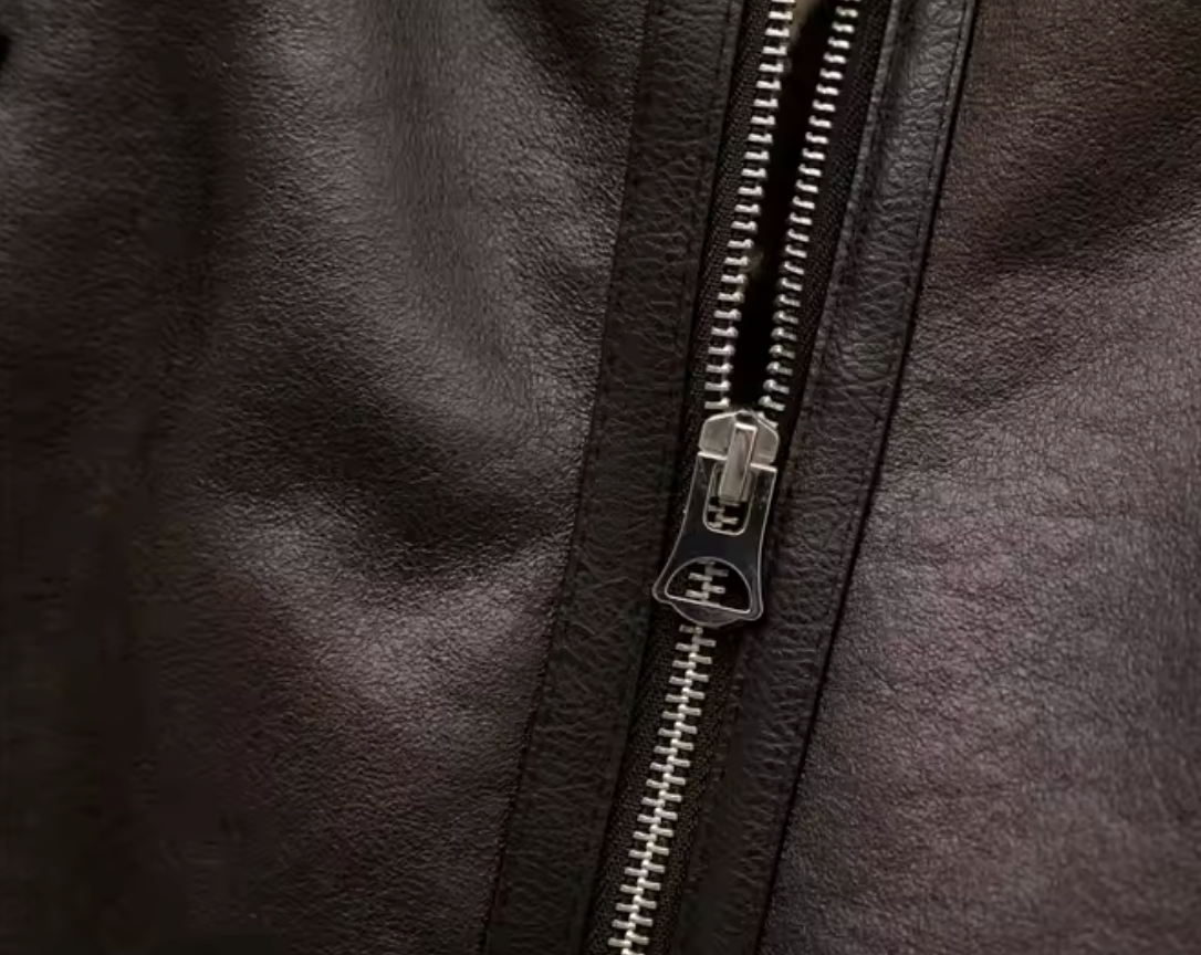 - Detaljer: Glidelås, lommer, klassisk biker-inspirert design