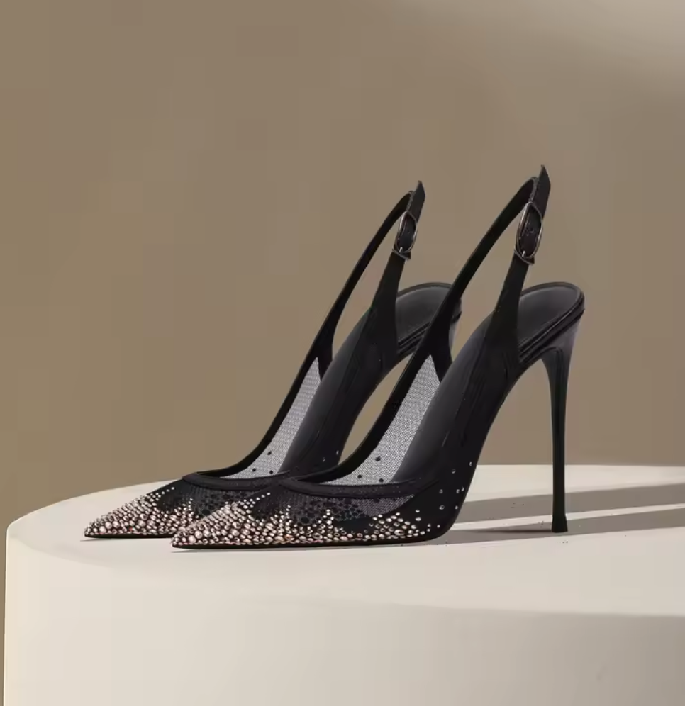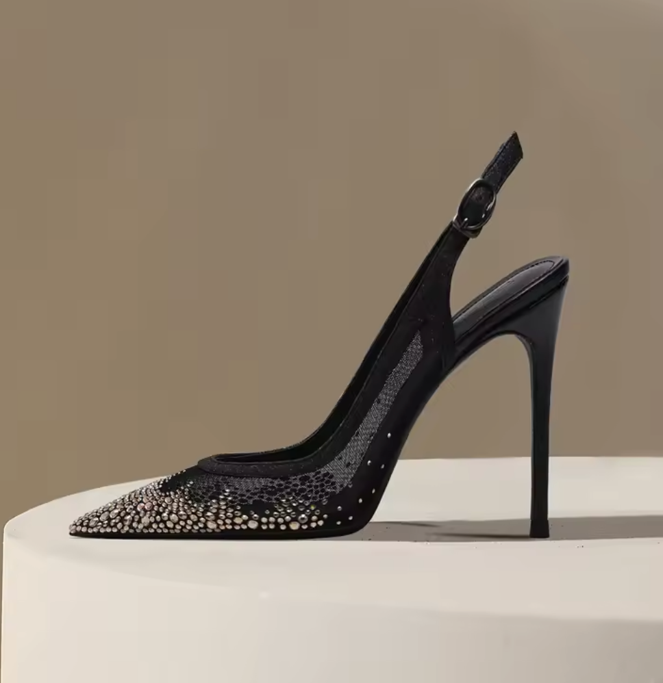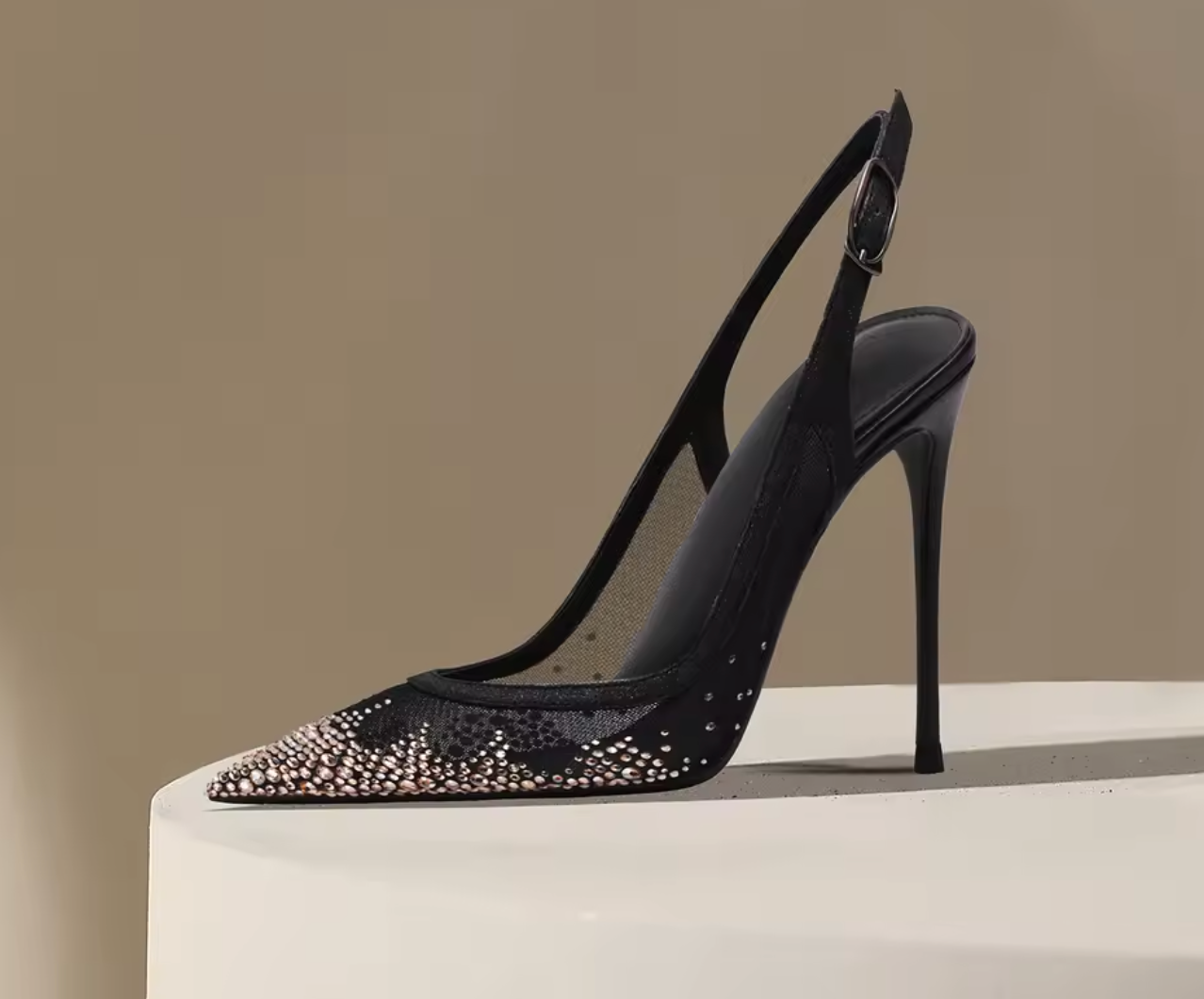 - Detaljer: Elegant spiss tupp, glansfull finish