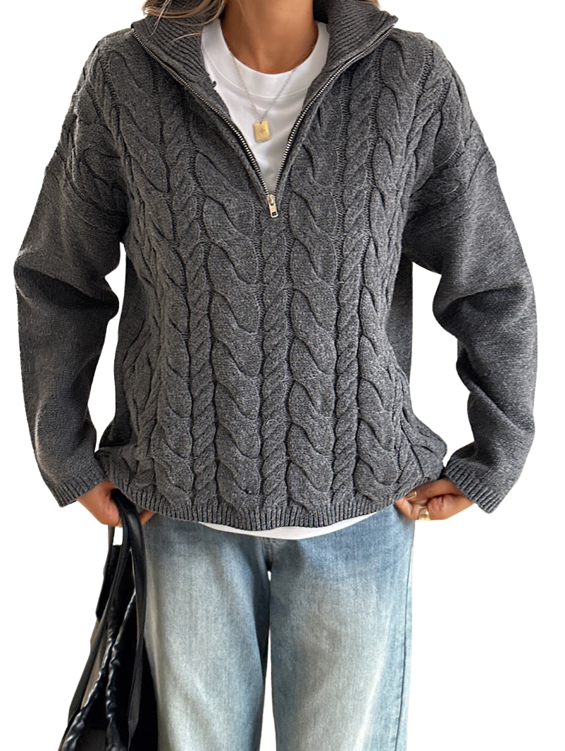 Elvoria Zip er en sporty og trendy genser med kort glidelås foran, perfekt for deg som ønsker både komfort og stil i ett plagg. Glidelåsen gir en fleksibel åpning, slik at du kan bruke genseren både lukket for en varm følelse, eller litt åpen for en mer avslappet look.