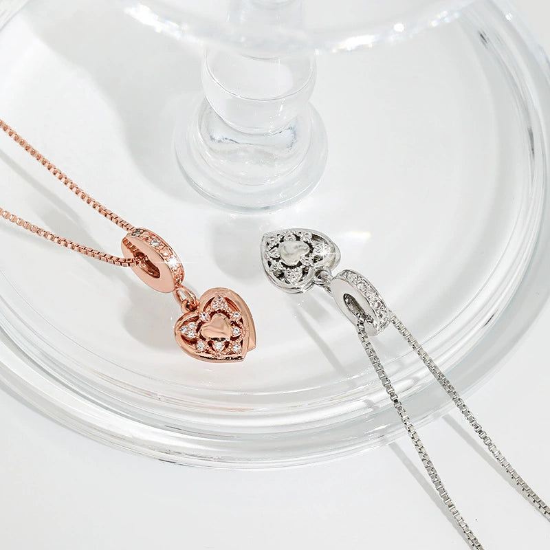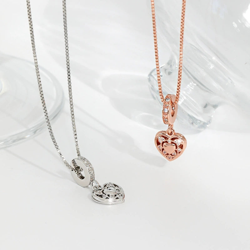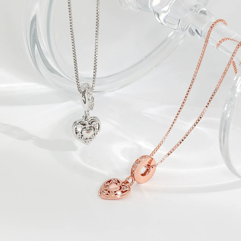 Dette elegante hjertekjedet i en kombinasjon av rosegull og sølv gir et romantisk og tidløst uttrykk. Hjerte-designet symboliserer kjærlighet og tilknytning, og det delikate samspillet mellom de to metallene gir et sofistikert og moderne preg. Perfekt for å uttrykke følelser eller som en vakker gave til noen spesielle.
