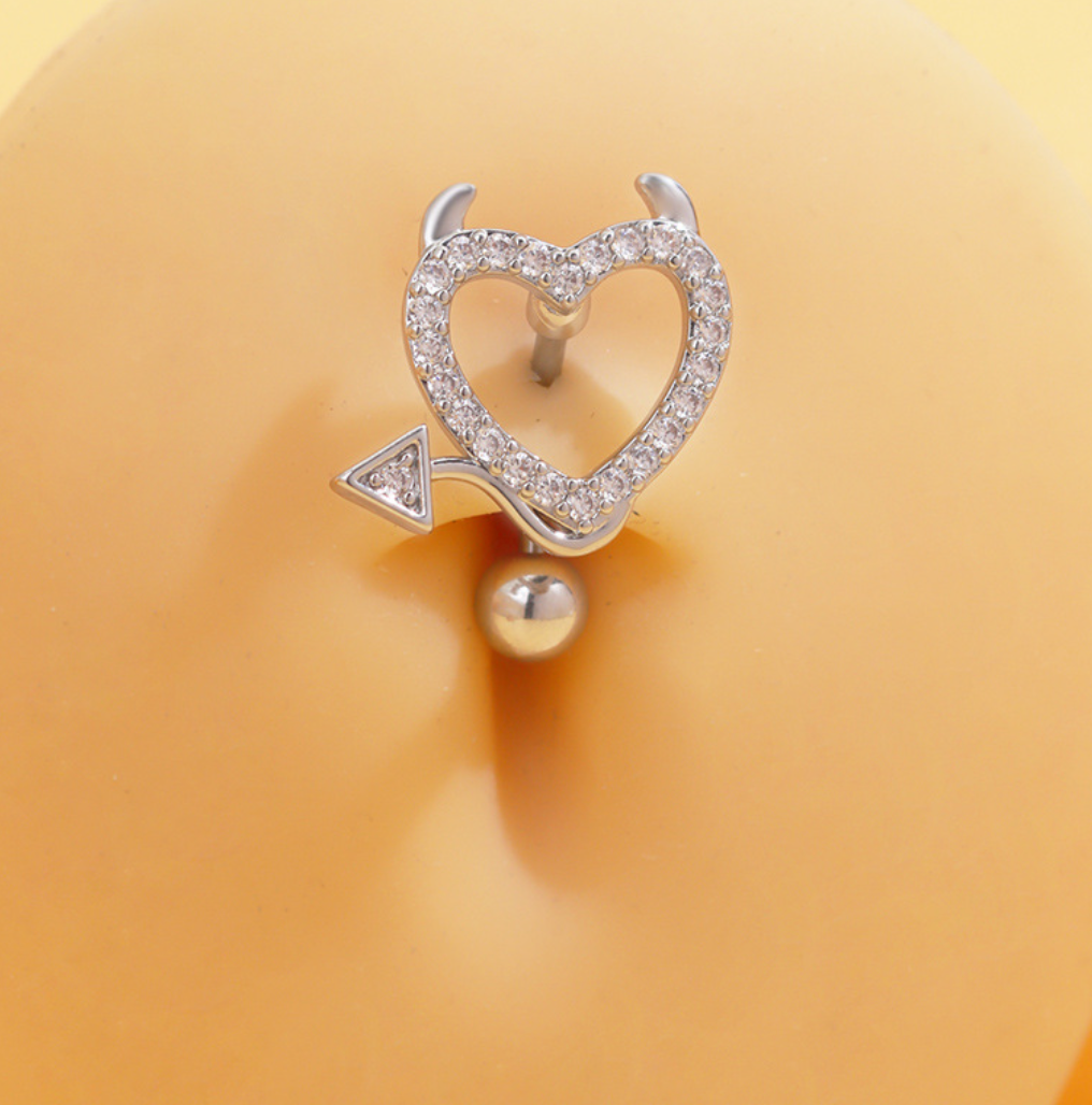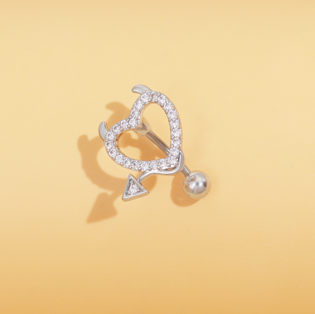 Gi antrekket det lille ekstra med denne nydelige navlepiercingen i sølv. Det delikate hjerteformede designet kombinerer et romantisk uttrykk med en glitrende finish, perfekt til sommerlooken eller som en subtil detalj under en cropped topp.