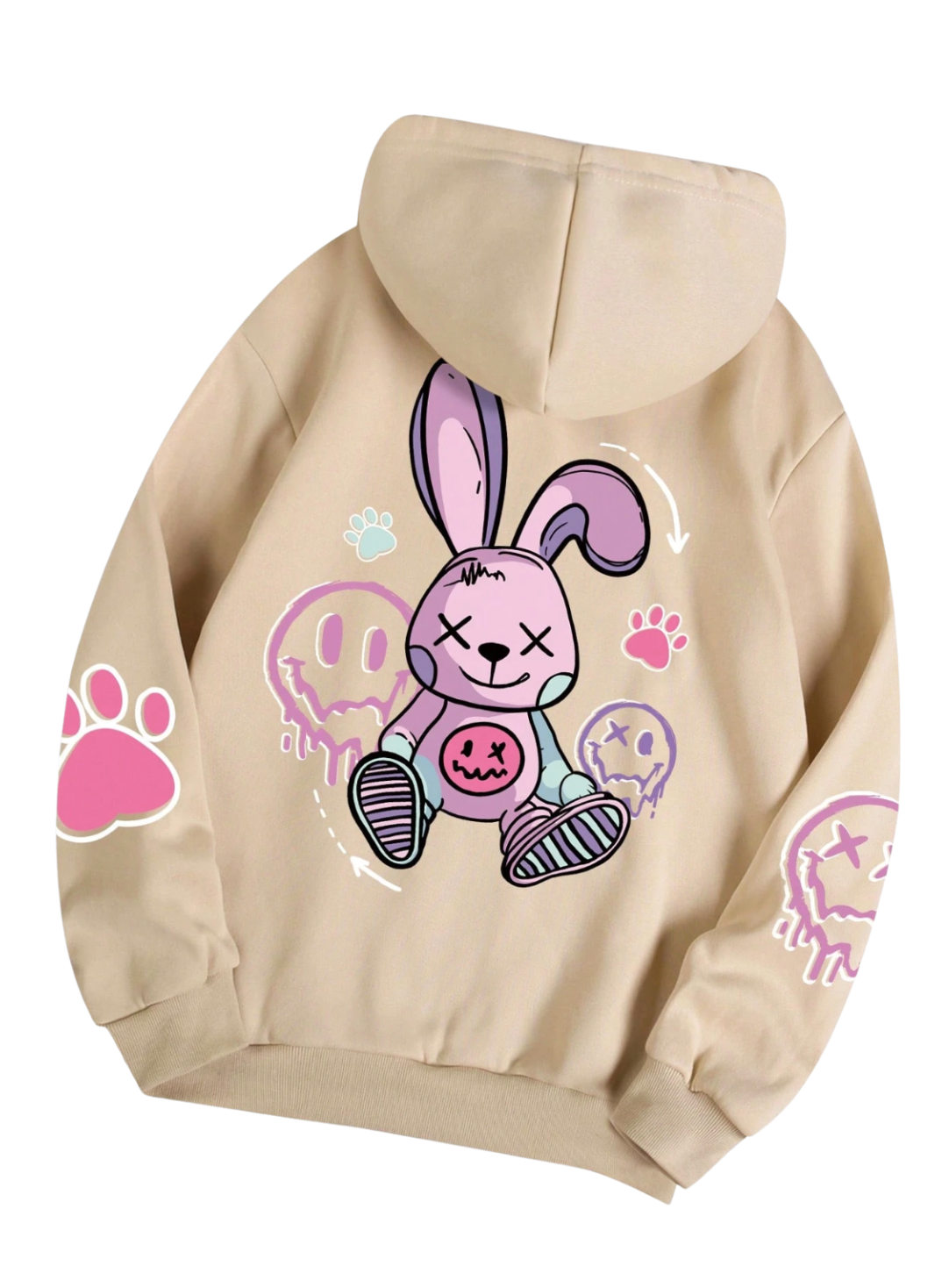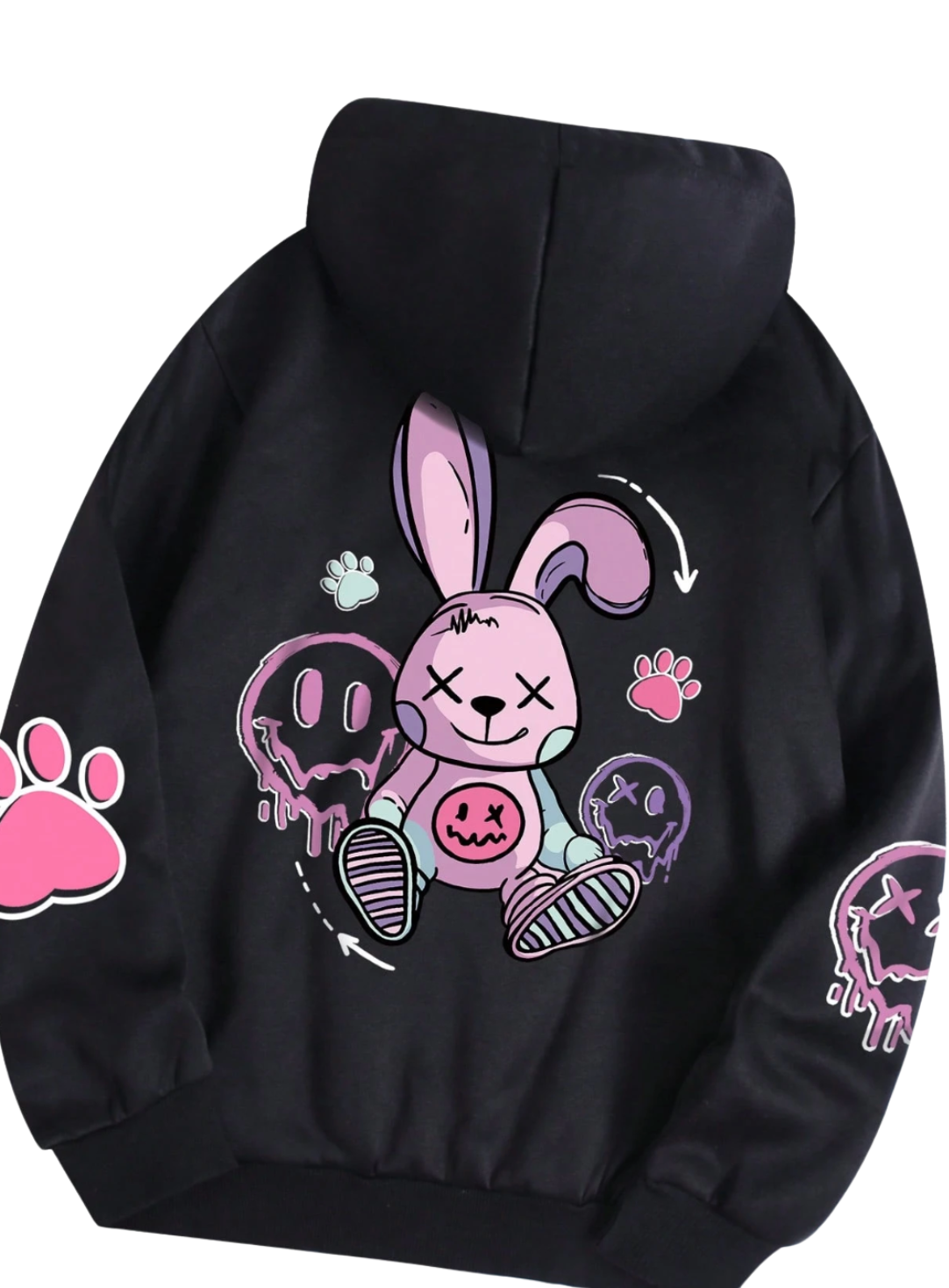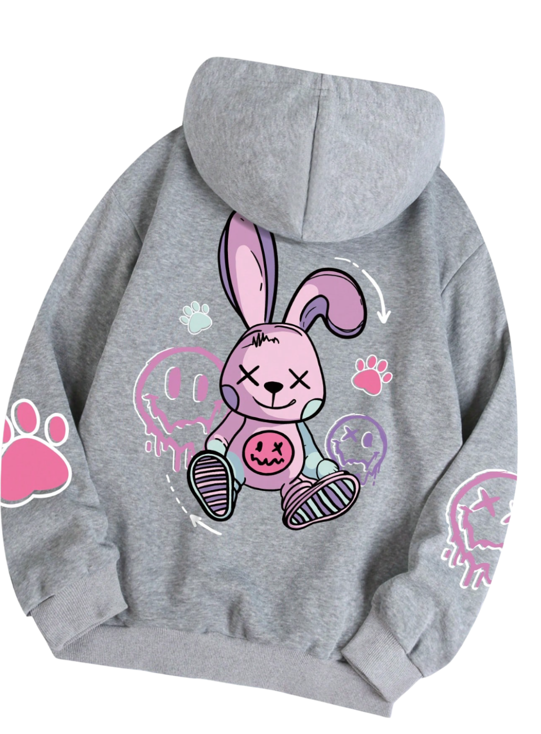 KawaiiHood er en myk og komfortabel hettegenser for dame, designet med et søtt og lekent trykk på ryggen som gir en unik og personlig stil. Perfekt for deg som liker streetwear med en feminin touch.
