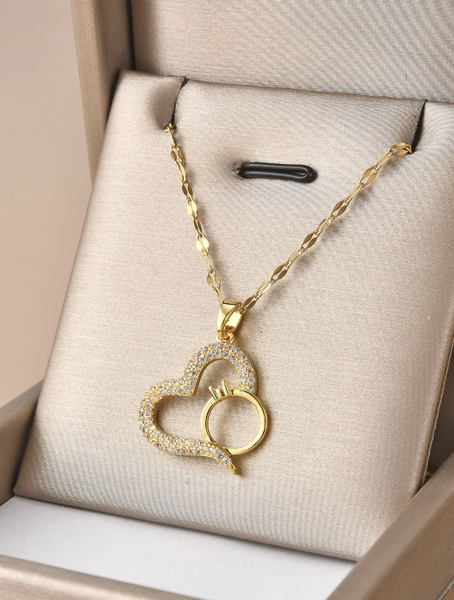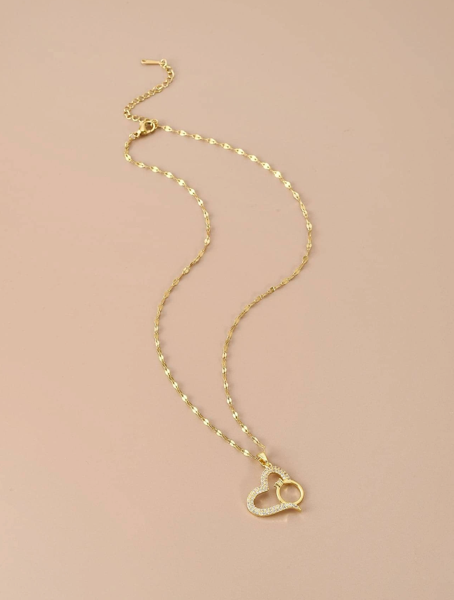 Circle of Love er et vakkert gullkjede med et hjerteanheng som omfavner en elegant ring. Designet symboliserer kjærlighetens evighet og uendelighet, og gir et sofistikert og tidløst uttrykk. Perfekt for å uttrykke kjærlighet eller som en spesiell gave til noen du er glad i.