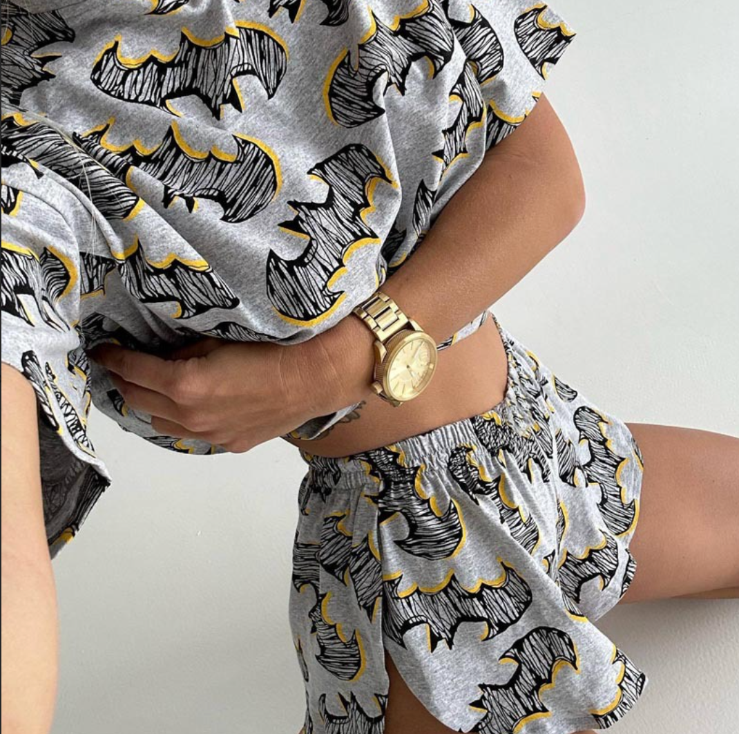 Pysjamassett designet for varme netter og myke morgenstunder. Den korte overdelen med korte ermer gir en avslappet og behagelig følelse, mens shortsen med elastisk linning sørger for god bevegelse og komfort hele natten. Det myke stoffet føles lett mot huden og gjør dette settet til en naturlig favoritt i kosegarderoben