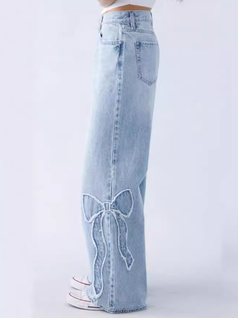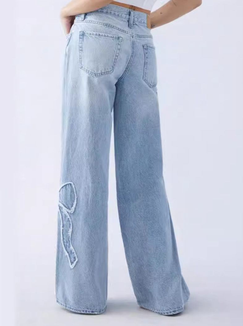 BowBelle High Waist er et par unike og feminine høyliv jeans for dame, designet med vakre sløyfedetaljer som gir en ekstra touch av stil. Laget i høy kvalitet denim, kombinerer de komfort, slitestyrke og et trendy uttrykk som passer både til hverdags og mer pyntede antrekk.