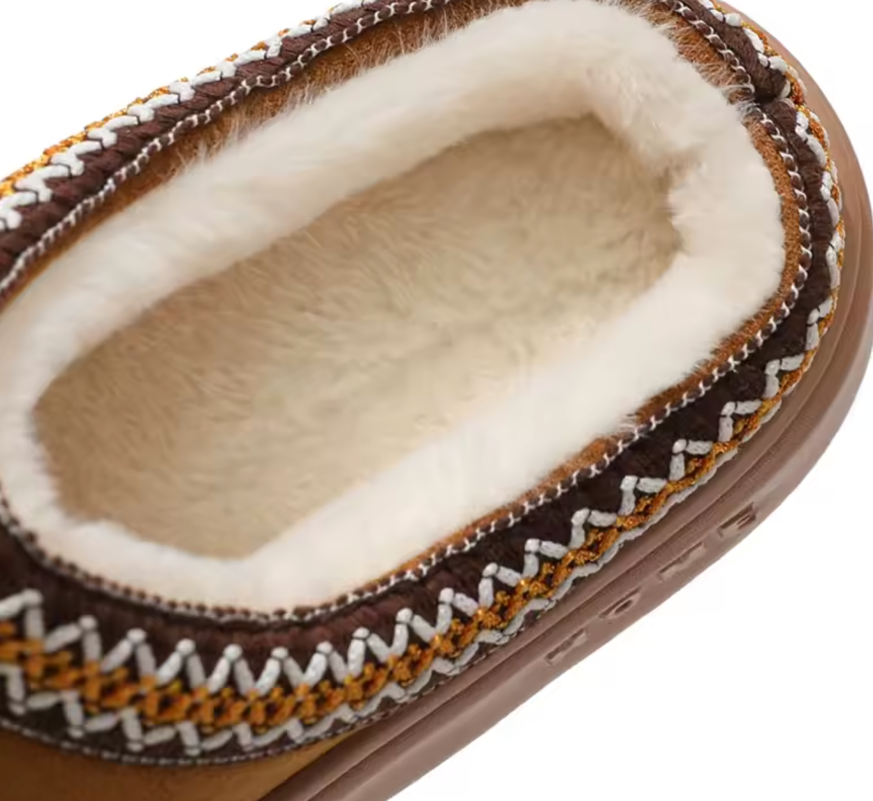 Tøflene kombinerer komfort, varme og tidløs stil, og har en lett, sklisikker såle som gjør dem praktiske både inne og på tørre uteområder. Perfekt for deg som ønsker UGG-lignende tøfler med samme koselige følelse – men til en rimeligere pris.