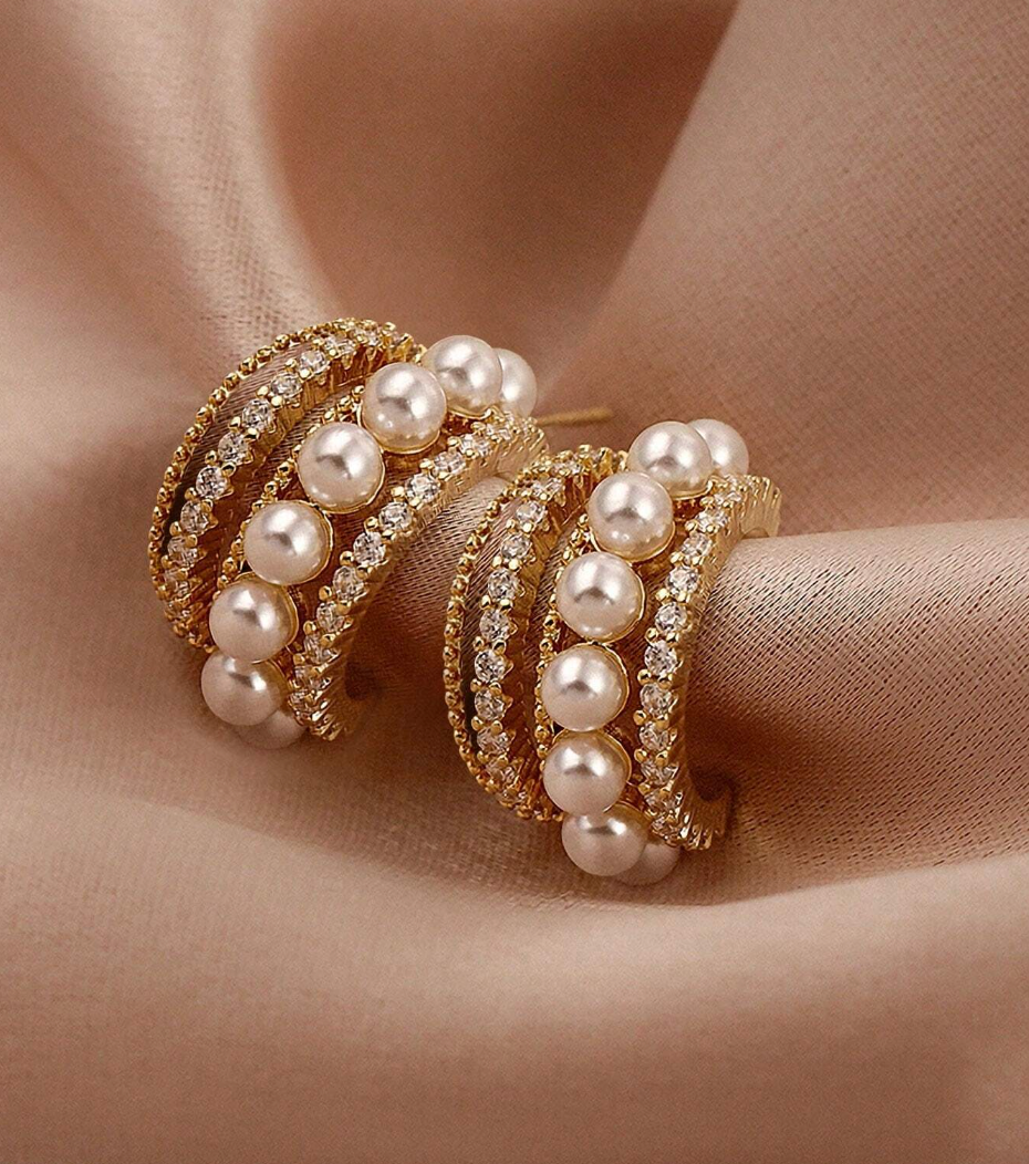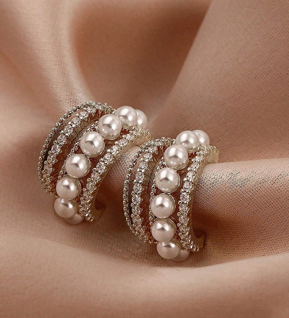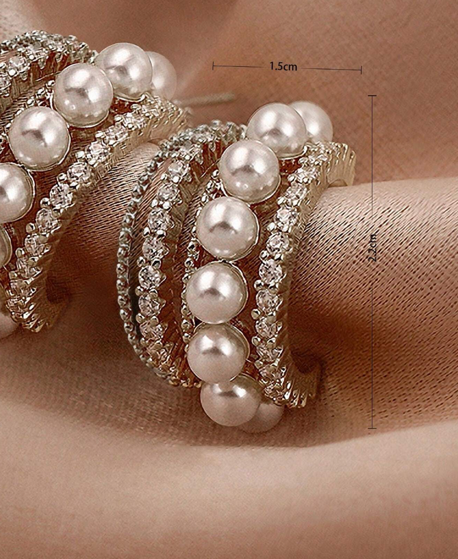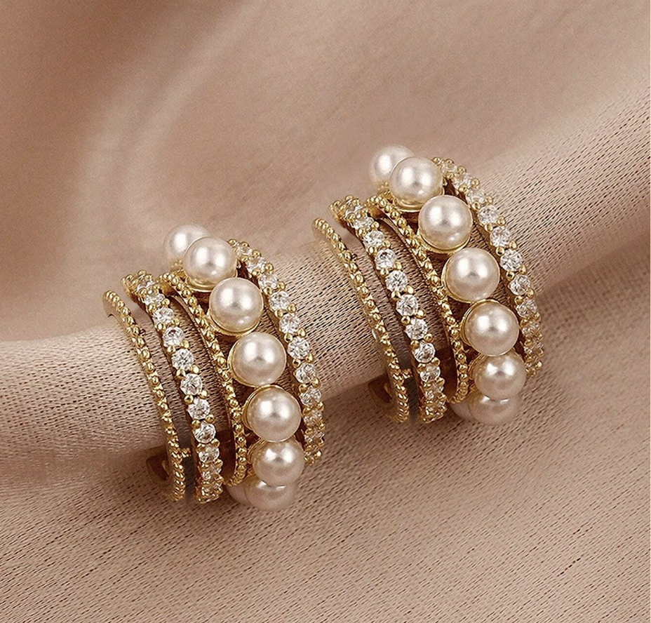 Disse små øredobbene kombinerer delikate perler med flere sammenkoblede ringer prydet med diamanter, tilgjengelig i både gull og sølv. Den sofistikerte designen med perlene og diamantene gir øredobbene et luksuriøst og tidløst preg, mens de sammenkoblede ringene tilfører en moderne og stilfull dimensjon. Perfekte for både hverdagsbruk og spesielle anledninger, gir de en subtil glans og eleganse til din stil.