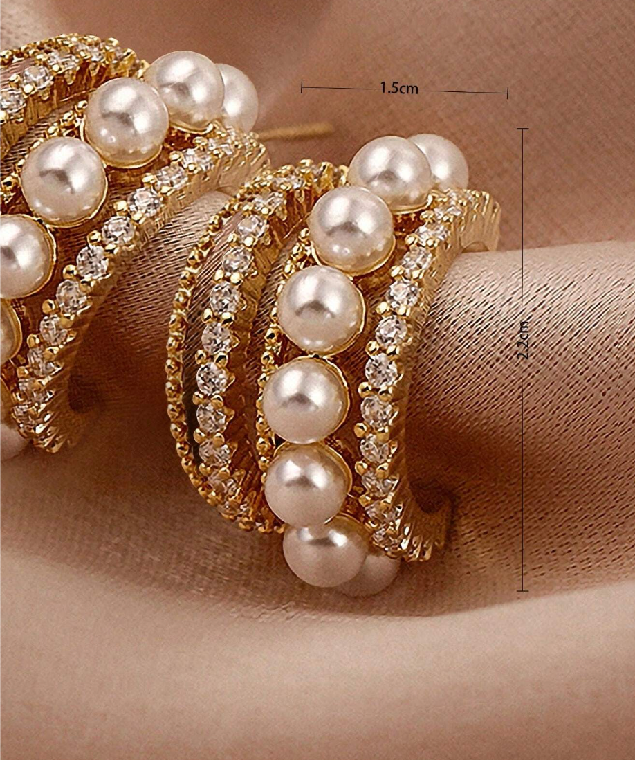 - Design: Små øredobber med perler og sammenkoblede ringer med diamanter