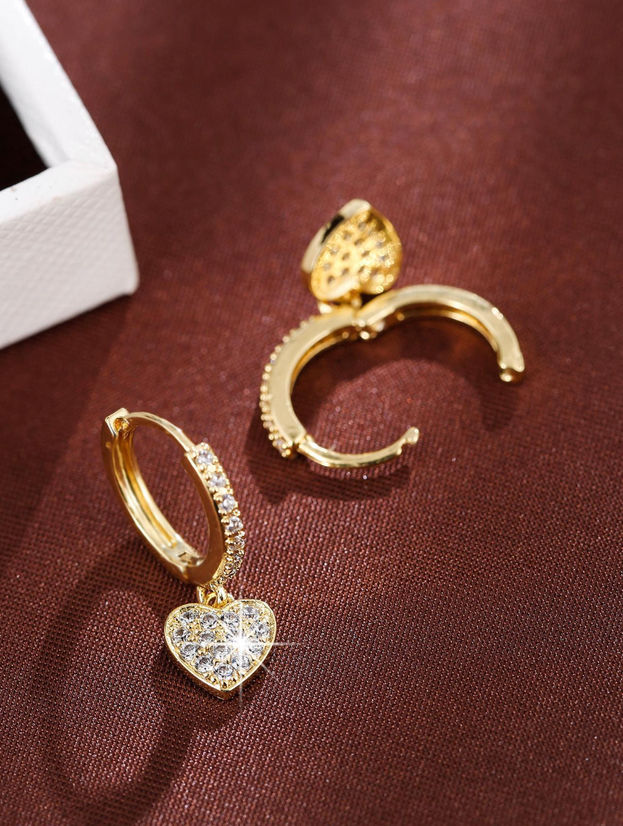 Disse elegante hengende øredobbene har et vakkert hjerteformet design i gull, som henger fritt og skaper en myk, feminin silhuett. Øredobbene er utstyrt med en praktisk ringlukking, som gir både stil og sikkerhet. Perfekte for både hverdagsbruk og spesielle anledninger, tilfører de en romantisk og sofistikert touch til ethvert antrekk.