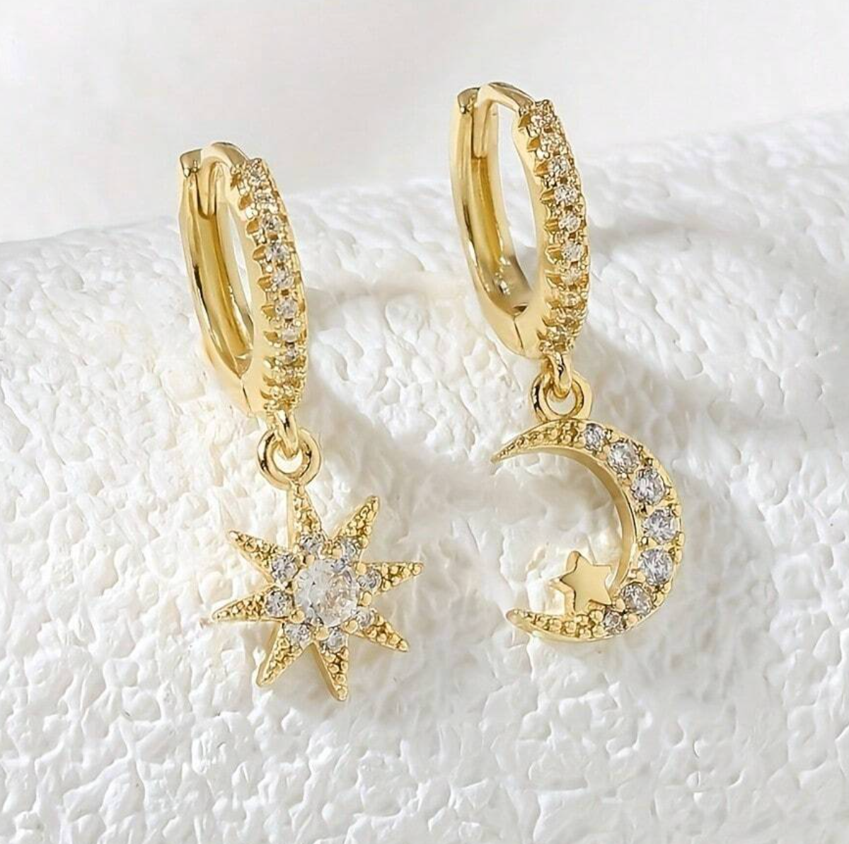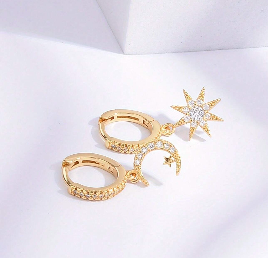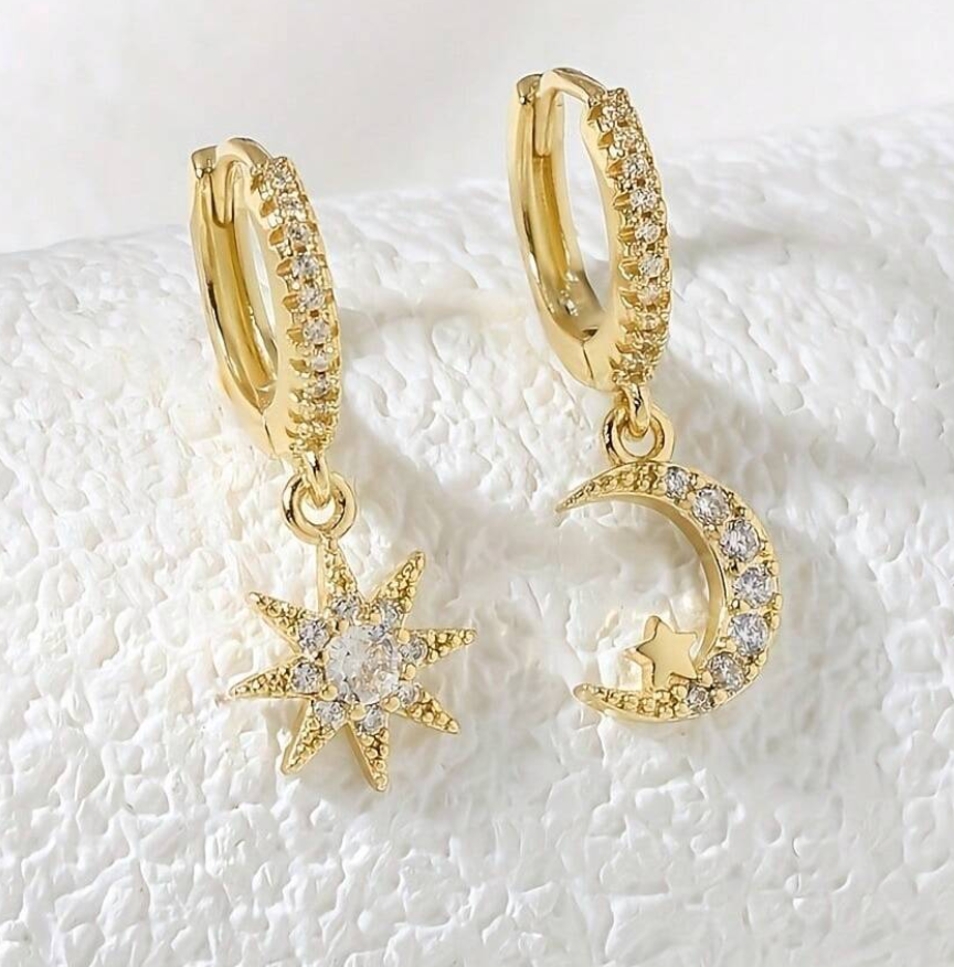 Disse elegante øredobbene kombinerer det mystiske og romantiske månemotivet med den energiske og livlige solen. Begge symbolene er designet i en vakker gullfinish, og gir et unikt og sofistikert uttrykk som passer til både hverdagsbruk og spesielle anledninger.