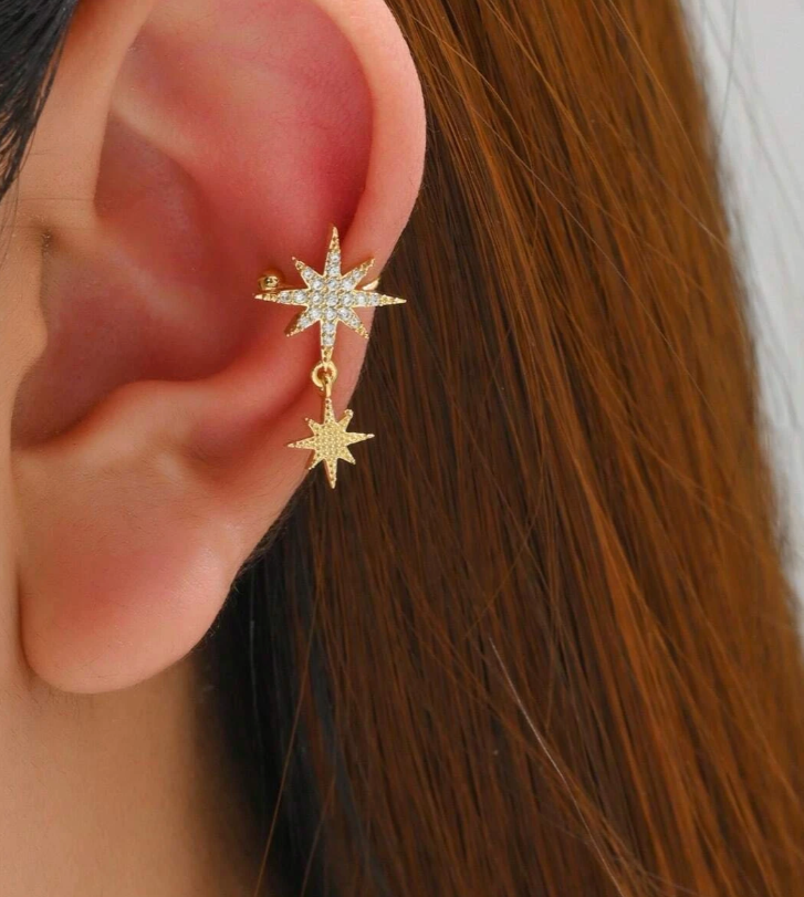 En delikat og tidløs øredobb med en liten hengende stjerne, tilgjengelig i både gull- og sølvutførelse. Designet for et elegant og subtilt uttrykk, passer denne øredobben perfekt til både hverdagsbruk og festlige anledninger.