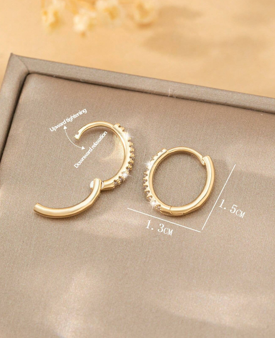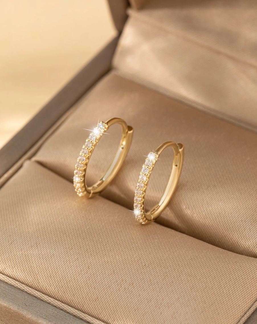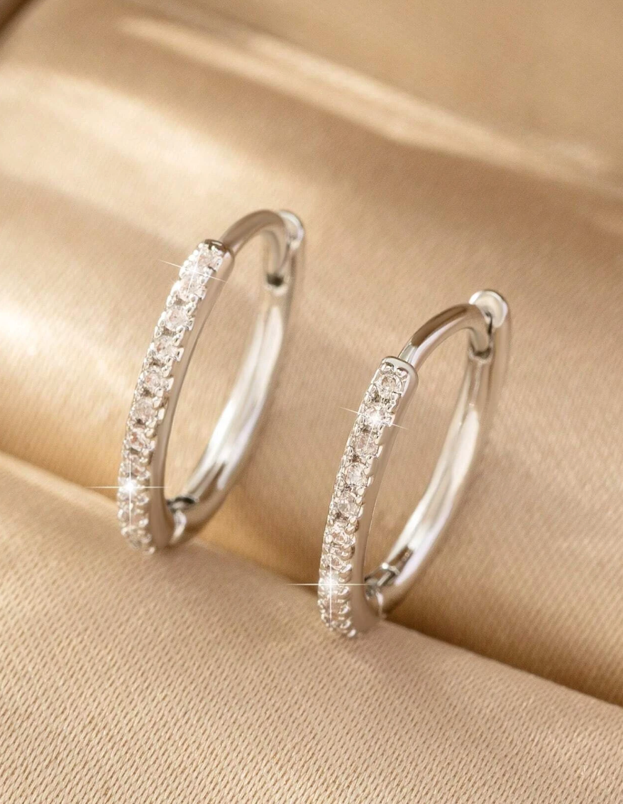 Disse middels store øredobbene er tilgjengelige i både gull og sølv, og er utsmykket med diamanter som gir en subtil, men strålende effekt. Designet er enkelt og elegant, perfekt for både daglig bruk og spesielle anledninger. Diamantene tilfører et luksuriøst preg, samtidig som de bevarer en tidløs og klassisk stil.