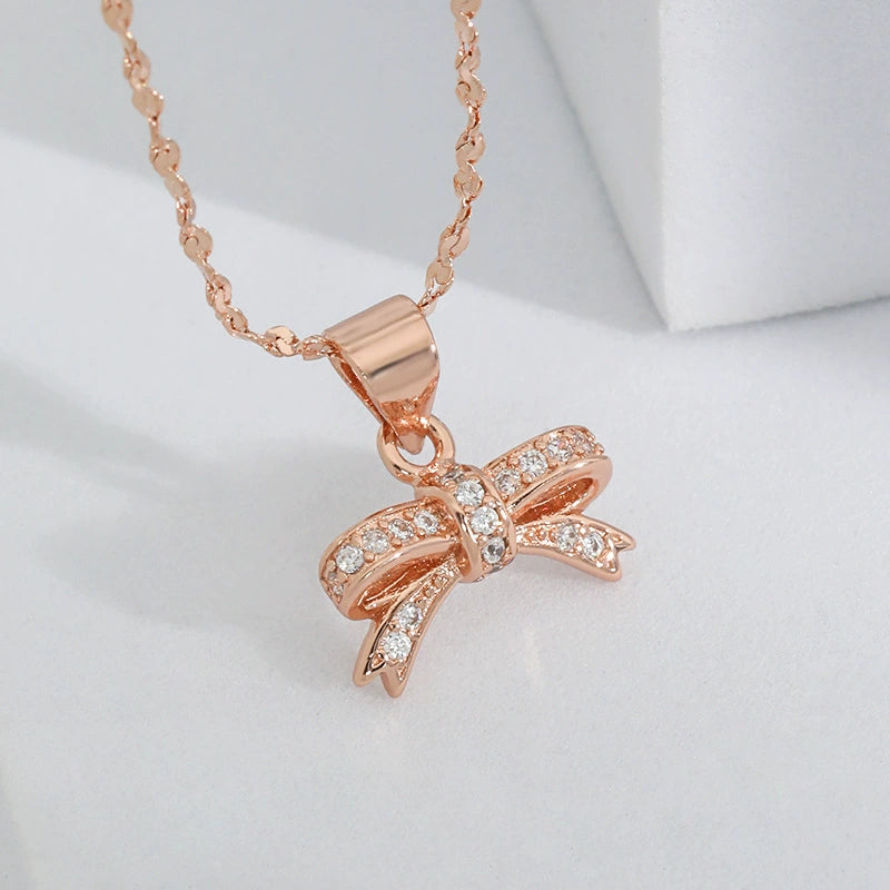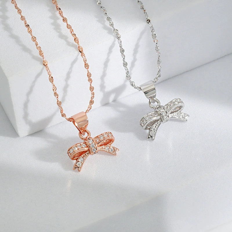 Dette elegante sløyfekjedet kombinerer de varme metalltonene Sølv og rosegull, og gir en tidløs og feminin stil. Designet som en delikat sløyfe, tilfører det en søt og sofistikert touch til ethvert antrekk. Perfekt for spesielle anledninger eller som et vakkert aksentstykke i hverdagen.