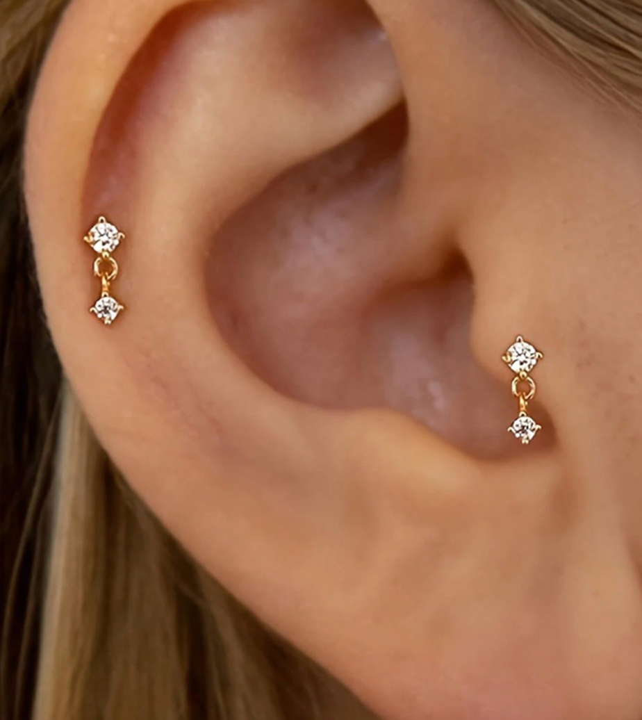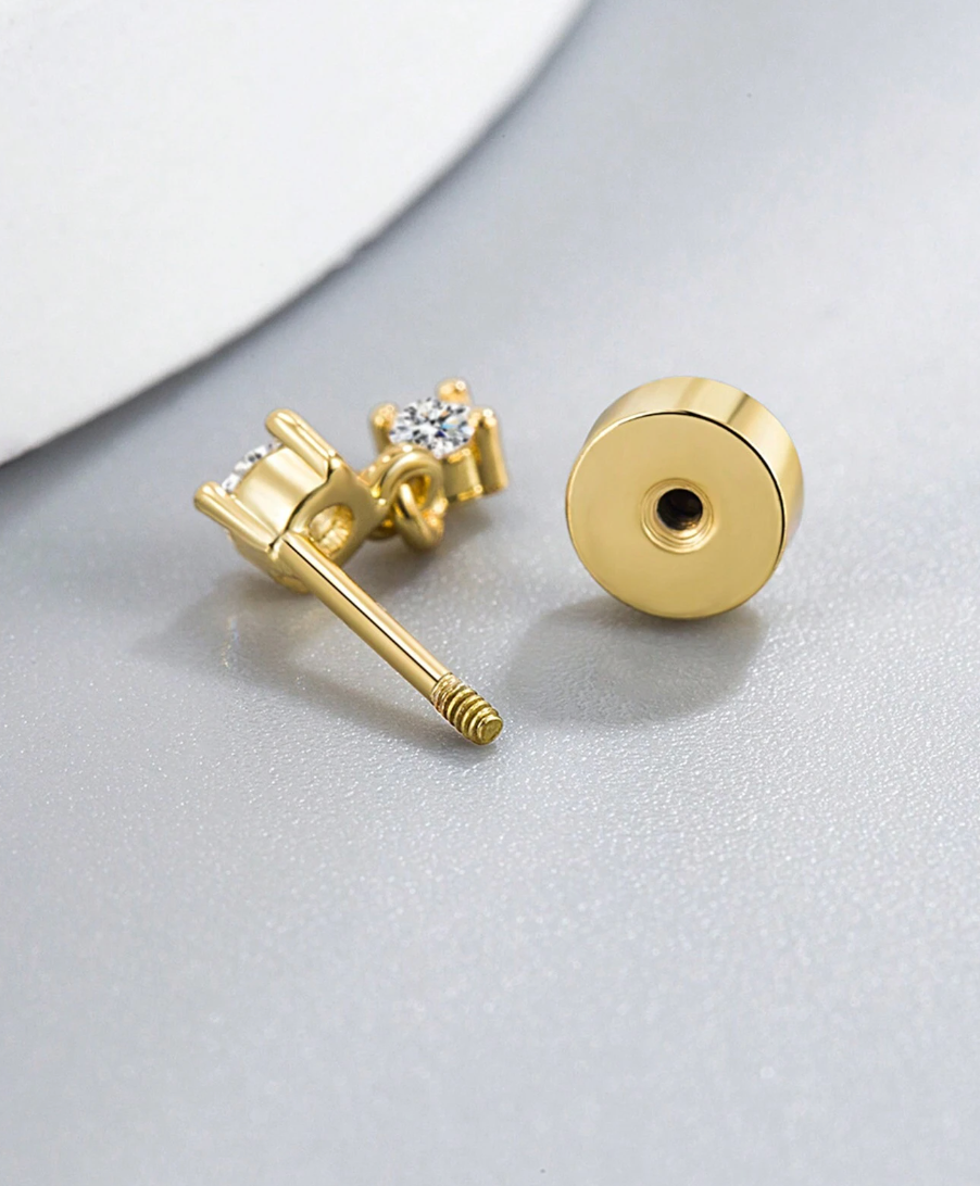 Disse små diamant øredobbene i gull er designet for å gi et rent, sofistikert uttrykk. De små diamantene fanger lyset og gir et elegant, diskret glimt, mens den gullbelagte rammen fremhever tidløs stil. Perfekte for både daglige anledninger og spesielle øyeblikk, gir disse øredobbene en subtil touch av luksus til ethvert antrekk.