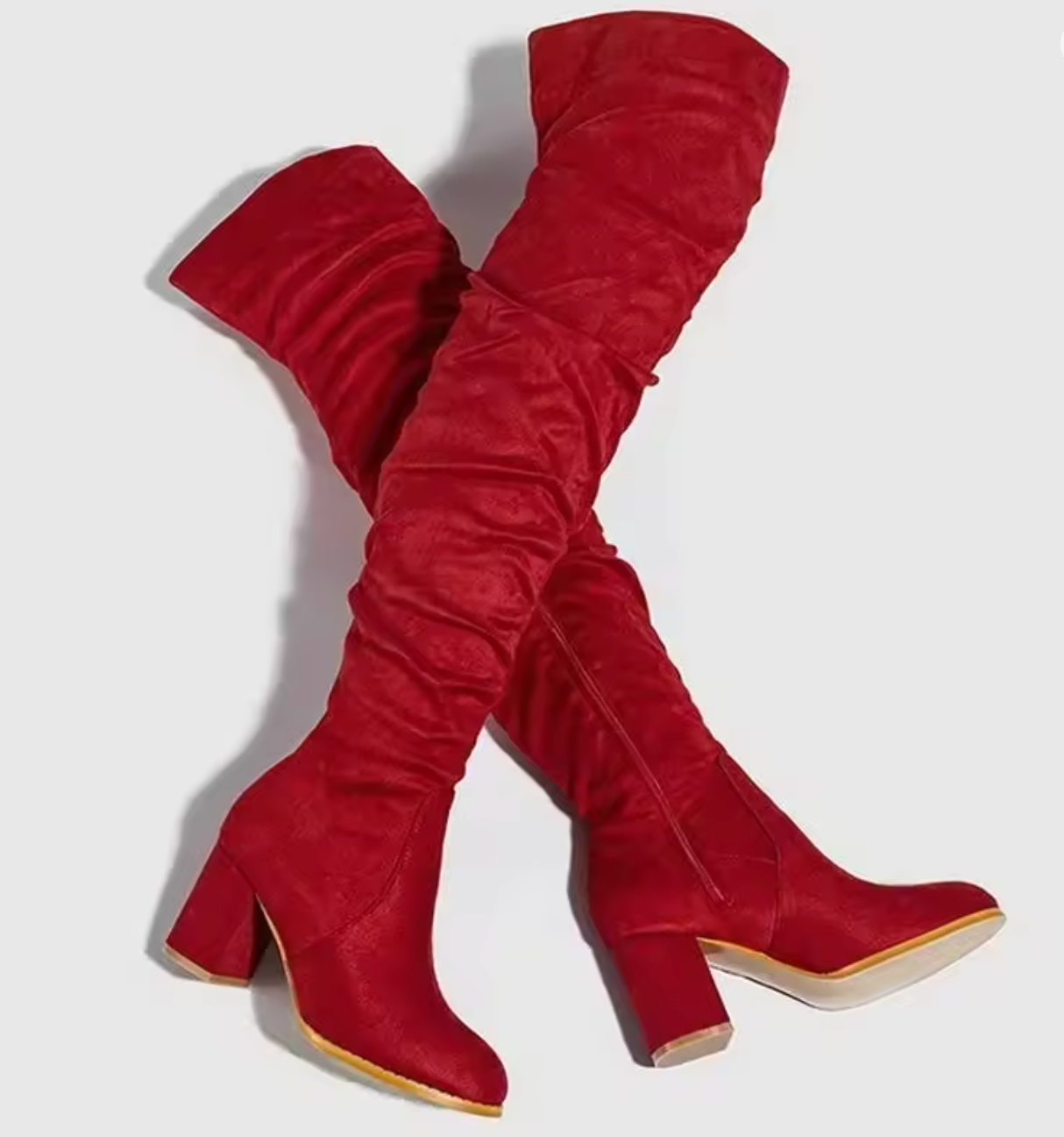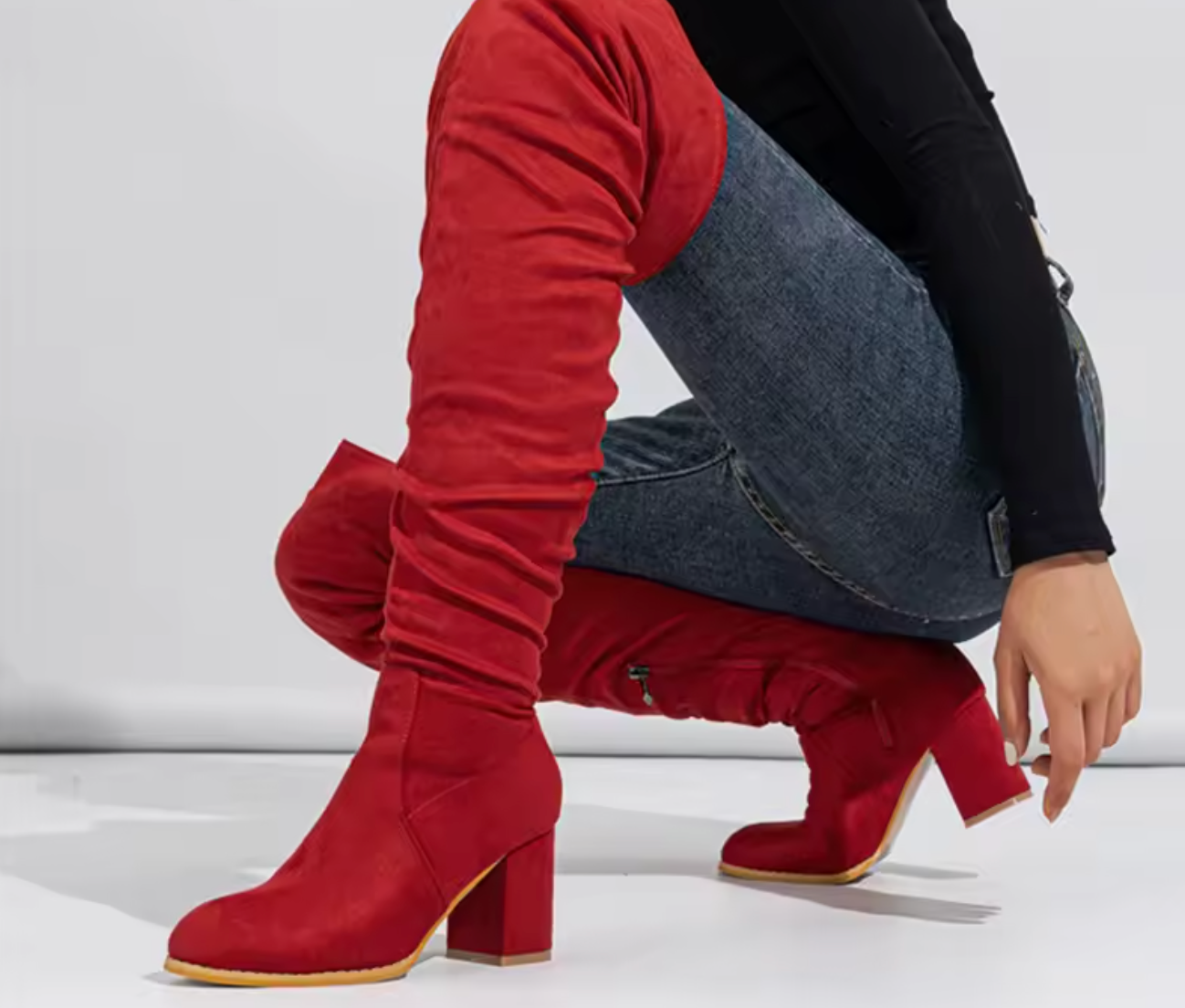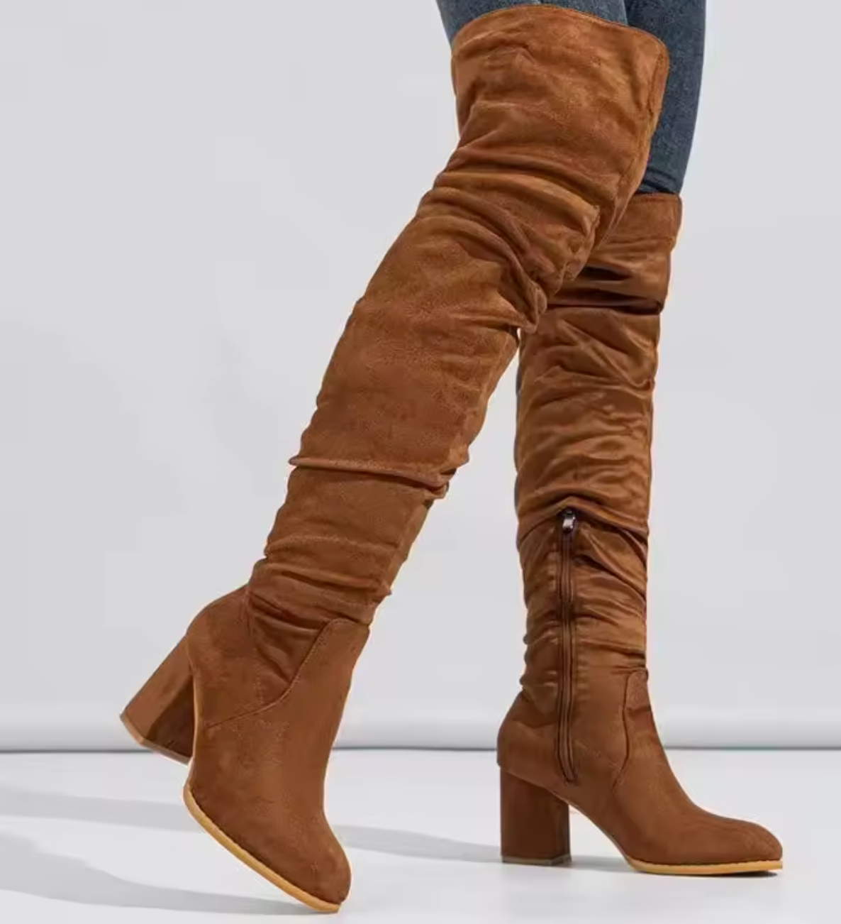 Soriel High Boots er elegante og tidløse over-kneet boots med lave hæler, designet for å gi både komfort og en sofistikert look. Den lange lengden fremhever beina på en flatterende måte, mens de korte hælene gjør dem behagelige nok til å brukes hele dagen.