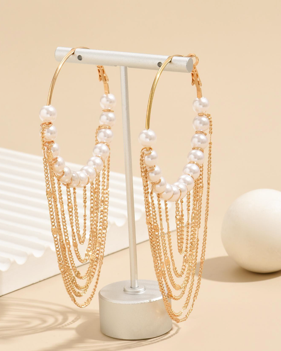 Disse store øredobbene i gull med perler kombinerer klassisk eleganse med moderne stil. De vakre perlene gir et luksuriøst preg, og den gullbelagte rammen tilfører en varm og sofistikert glans.