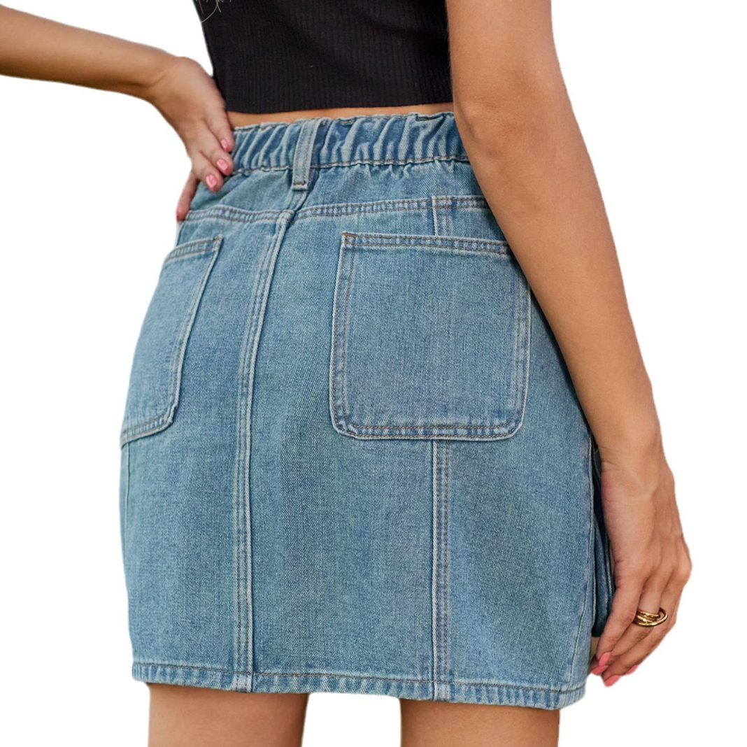 Utility Denim Skjørt er et praktisk og stilfullt kort jeansskjørt, designet med funksjonelle lommer for en ekstra dose funksjonalitet og stil. Laget av slitesterk denim, gir dette skjørtet både komfort og et uanstrengt, moderne utseende. De praktiske lommene gjør det både praktisk og trendy, perfekt for hverdagsbruk eller en uformell utflukt.