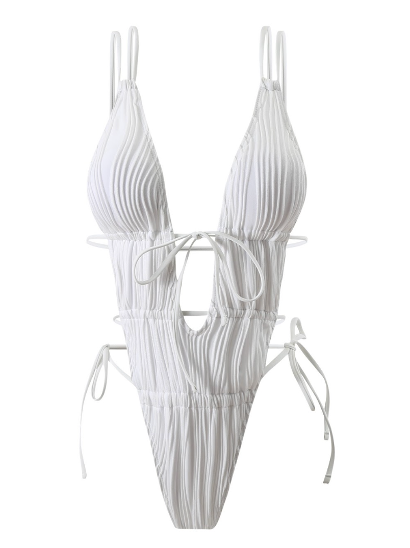 Denne hvite badedrakten er det ultimate symbolet på stilren sensualitet. Den kombinerer en enkel og flatterende passform med delikate detaljer som fremhever kroppen på akkurat de rette stedene. Den hvite fargen gir et rent, eksklusivt uttrykk som står vakkert mot solbrun hud – perfekt for deg som vil føle deg både feminin og selvsikker.